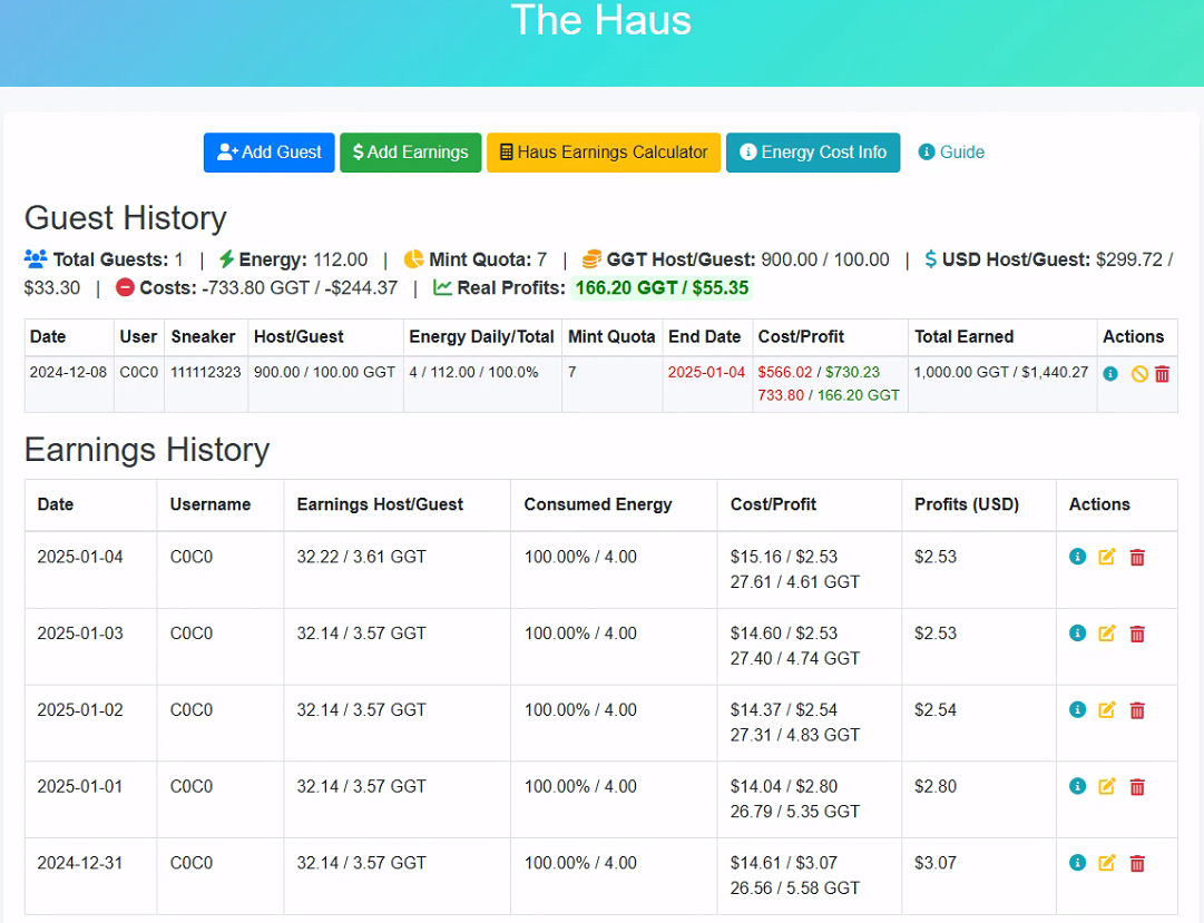- Earnings History Table Updates – Now displays daily splits of earnings rather than cumulative totals, providing a clearer breakdown of host and guest earnings.